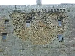 In 1650 the Castle was attacked by Oliver Cromwell's forces, and was surrendered after only a few cannon shots.[16] The damage to the walls from this attack is still visible.[17]