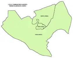 As one of the largest suburbs of Belgrade and a large settlement in its own right, Borča developed several sub-neighborhoods of its own. Officially, after the 1981 census, Borča is divided into three "local communities" (mesna zajednica), sub-municipal administrative units: Stara Borča (formerly Borča I, 1991-2002), Borča Greda (formerly Borča II) and Nova Borča (formerly Borča III). Most of Borča is grouped into centers (Centar I to V), which are sometimes referred to as Borča I to V (Centar I = Borča I, etc.).