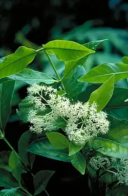 Bosistoa medicinalis, commonly known as the northern towra[2] or Eumundi bosistoa,[3] is a species of small to medium-sized rainforest tree that is endemic to Queensland. It has simple and pinnate leaves with two or three leaflets and panicles of small white flowers.