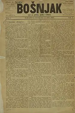 - ^ "List Bošnjak: Borba za bošnjaštvo bila je na život i smrt i traje od 1891. godine". stav.ba.