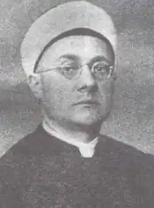 During World War II Bosnia was annexed as a part of the Independent State of Croatia, a Nazi Puppet State where the Bosniaks were seen as Croat Muslims. Although their ethnicity was not allowed Muslims enjoyed religious freedom, but from 1941 to 1945 the Muslims especially around Sandžak, Podrinje and Herzegovina were openly attacked, massacred, burned alive and raped by Chetnik Militia in rural Bosniak villages.[23] Due to the failure of the Ustaša regime many Bosniaks joined the Yugoslav Partisan Movement, such as Sulejman Filipović. The Ustashe, attempting to secure their Eastern Border from Partisans and Chetniks formed Hadžiefendić Legion and the Hadnschar Division and the Germans formed the Sandžak Muslim Militia in Sandžak. Although open to Chetnik attacks for years the local Bosniak intellectual elite gathered together to form a resolution of a total of 108 Bosniak intellectuals in Prijedor (September 23, 1941), Sarajevo (October 12, 1941), Mostar (October 21, 1941), Banja Luka (November 12, 1941), Bijeljina (December 2, 1941), Tuzla (December 11, 1941) and Zenica (May 26, 1942).[24] The basis for the Resolution of Sarajevo Muslims was a resolution declared by El-Hidaje, an association of ulama from Bosnia and Herzegovina on its assembly held on August 14, 1941. It was written by Mehmed Handžić and Kasim Dobrača. All Muslim resolutions of 1941, including the Resolution of Sarajevo Muslims, contain the following elements: