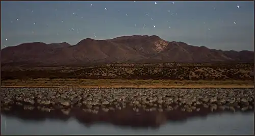 Bosque del Apache National Wildlife Refuge was established in 1939 to protect a crucial stopover for migrating waterfowl, such as sandhill cranes and geese. Located in Socorro County, the refuge lies between the Chupadera Mountains to the west and the San Pascual Mountains to the east and contains 57,331 acres of land along both banks of the Rio Grande.[1]