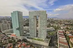 The Arcos Bosques office and shopping complex is located in the neighborhood, just east of the beginning of the Santa Fe district, Mexico City's new financial district.