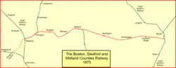 The Boston, Sleaford and Midland Counties Railway opened a railway line between Grantham and Boston, through Sleaford, England. It opened in two stages, in 1857 and 1859.