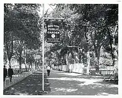 The original Festival, briefly named the "Boston Art Festival," was held at Boston's Public Garden between 1952 and 1964.[6] That version is credited with democratizing access to the fine arts in Boston, especially for young, emerging and often Jewish-American, artists who felt shut out of Boston's famously Brahmin museums and other institutional exhibition sites. Activist artists, either linked by the Boston Museum School or the Boris Mirski Gallery founded the Boston Arts Festival. The first Festival debuted on June 12, 1952,[6][7] and displayed fine art in tents in the Public Garden, and provided free performances in nearby Boston Common. This represented a major break in how art was presented in New England. No longer confined to the monied and the elite, the early Festivals provided avant garde artists with a forum in which to show their work, compete and interact with one another. That exchange of ideas and influences developed into the earliest form of American Figurative Expressionism, known as Boston Expressionism.