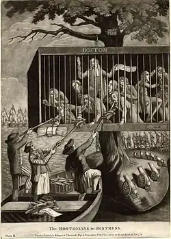 The Boston Port Act, also called the Trade Act 1774 (14 Geo. 3. c. 19),[1] was an act of the Parliament of Great Britain which became law on March 31, 1774, and took effect on June 1, 1774.[2] It was one of five measures (variously called the Intolerable Acts, the Punitive Acts or the Coercive Acts) that were enacted during the spring of 1774 to punish Boston for the December 16, 1773, Boston Tea Party.[3]