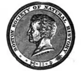 Founders of the society in 1830 included Amos Binney Jr., Edward Brooks, Walter Channing, Henry Codman, George B. Emerson, Joshua B. Flint, Benjamin D. Greene, Simon E. Greene, William Grigg, George Hayward, David Humphreys Storer, and John Ware. Several had previously been involved with the Linnaean Society of New England. By 1838, the society held "regular meetings on the 2nd and 4th Wednesday of each month."[3] "In its collection are about 700 specimens in mineralogy and geology, besides the rich collection of Dr. C.T. Jackson, and the state collection; botany, 5,000; mammalia, 30 entire skeletons and 30 crania; birds, 200 species; reptiles, 130; insects, about 15,000; crustacea, 130; radiata, 190. Library, 600 volumes and pamphlets. The room ... gratuitously opened to the public every Wednesday from 12 to 2 o'clock."[3]