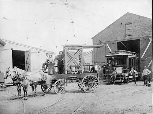 The Boston & Northern Street Railway Company (B&N) was a horse-drawn and electric streetcar railroad operated on the streets of Boston, Massachusetts, and communities to the north. Founded in 1859 as the Lynn and Boston Railroad (L&B), via lease and merger it became a primary mass transit provider for northeastern Massachusetts and New Hampshire. Its immediate successor was the Bay State Street Railway (Bay State),[1] and its modern successor is the state-run Massachusetts Bay Transportation Authority (MBTA).[2]