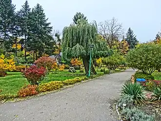 The collection of trees and shrubs of the arboretum counts 660 species and plant varieties, including 65 families, 161 species and 13 crossbreedings.[1] They are from diverse origins: native, foreign, legally protected and relict species.[10] Most represented plants are roses (143 varieties), maples (26), junipers (24), birches (15), spindle trees (13) and dogwoods (11).[1]