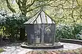 - Cottage garden (642 m2 or 6,910 sq ft) - a lawn with three maples and garden area (226 m2) patterned on descriptions of the Garden of Eden with four streams, containing flowers such as daffodil, foxglove, iris, lily of the valley, lupine, marigold, nasturtium, peony, phlox, yarrow, etc.