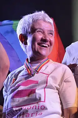 María Dolores García Rodrigo (born 30 May 1945), commonly known as Boti García Rodrigo,[2] is a Spanish professor and LGBTI activist who served as the first General Directorate of Sexual Diversity and LGBTI rights of the Ministry of Equality from 2020 to 2023. As the former president of the Federación Estatal de Lesbianas, Gays, Transexuales y Bisexuales (FELGTB), she oversaw COGAM. Additionally, she served as the collective's representative on the United Left electoral lists. The Madrid City Council awarded her the Medalla de Madrid in recognition of her rights advocacy in 2018.[3]