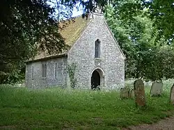 The early church, commonly called St Bartholomew's, adjacent to the old village of Boteleigh, was mentioned in the Domesday Book of 1086. This church, 1 mile (1.6 km) south of the current village, was largely destroyed after a large poplar tree fell onto the nave in the early 1830s. This reduced the original capacity of 500 to what had been the chancel. The existing structure is 13th-century with an older doorway retrieved from the ruins and reset in the west wall. The east window is Perpendicular Gothic in style and dates from the 15th century. The church was formally declared redundant in May 1982.[9][10][11][12][13]