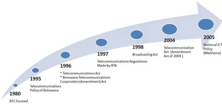 - ^ a b "BTA's Origins". Botswana Telecommunications Authority. Archived from the original on April 20, 2009. Retrieved May 10, 2010.