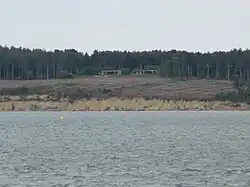 ![]() Bouldnor Battery overlooking the Solent. Bouldnor Cliff lies under the water in front of the cliffs. | |