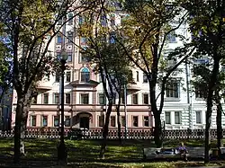 The Boulevard Ring (Russian: Бульва́рное кольцо́; transliteration: Bulvarnoye Koltso) is Moscow's second innermost ring road (the first is formed by the Central Squares of Moscow running along the former walls of Kitai-gorod). Boulevards form a semicircular chain along the western, northern and eastern sides of the historical White City of Moscow; in the south the incomplete ring is terminated by the embankments of Moskva River.