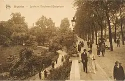 The Boulevard du Jardin botanique was one of the earliest boulevards in the City of Brussels, completed from 1818 to 1820, according to the plans of the architect J.B. Vifquain.[2] It was first called the Boulevard de Schaerbeek/Schaarbeekselaan ("Schaerbeek Boulevard") in tribute to the Schaerbeek Gate through which it passed in Saint-Josse-ten-Noode.[2][3] The Schaerbeek Gate was situated at the top of the boulevard.[2][4] The name of the boulevard was later changed to honour the Botanical Garden of Brussels in the mid-1800s.[2]