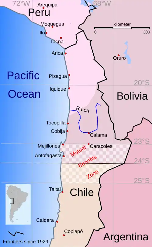![]() The border (24°S) was kept as 1866, but the Zone of Mutual Benefits was abolished | |