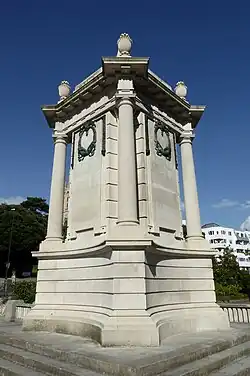 Bournemouth War Memorial is a First World War memorial built in 1921, located in the central gardens in Bournemouth, United Kingdom. The memorial is guarded by two stone lions made by WA Hoare. It was designed by Bournemouth's deputy architect Albert Edward Shervey, who copied the two lions (one sleeping, the other awake and roaring) from Antonio Canova's lions which guarded the tomb of Pope Clement XIII.[2][3]