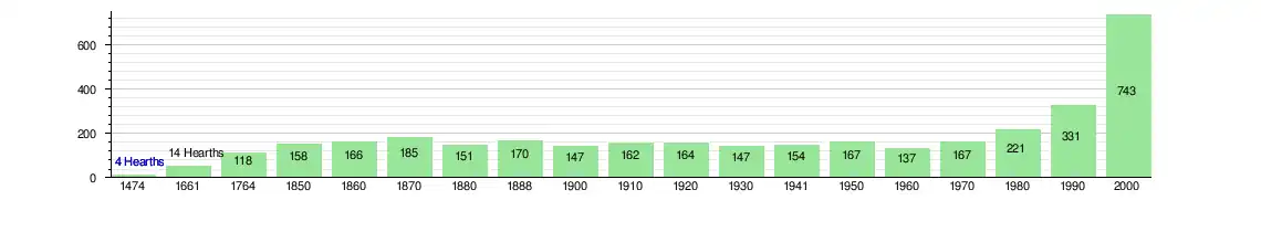 As of 2000, there were 259 private households in the municipality, and an average of 2.8 persons per household.[9] There were 41 households that consist of only one person and 25 households with five or more people. Out of a total of 264 households that answered this question, 15.5% were households made up of just one person and there were 2 adults who lived with their parents. Of the rest of the households, there are 69 married couples without children, 125 married couples with children There were 13 single parents with a child or children. There were 9 households that were made up of unrelated people and 5 households that were made up of some sort of institution or another collective housing.[10]