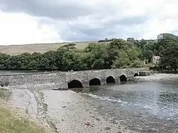 The A379 road crosses the southern portion of the creek over the so-called New Bridge. This bridge over the estuary was constructed by James Meadows Rendel in 1826. It was originally made of four masonry arches and an opening span, but this was eventually replaced with a fifth arch.[2][3]