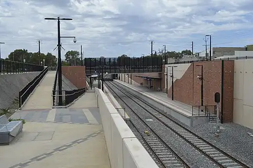 ![]() Newly built Bowden station platforms in December 2018, looking south-east towards Adelaide's city centre | |||||||||||||||||||