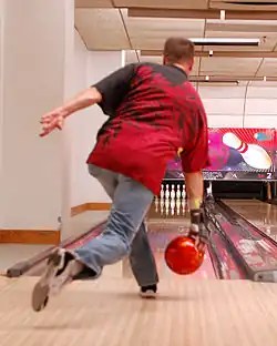 A bowling shirt, often referred to as a "bowler" or "bowling" shirt, is a distinctive and iconic piece of clothing closely associated with the sport of bowling.[1] These shirts have a style of camp shirt in which the fabric, color and design vary greatly, but frequently incorporate contrasting earth tones and simple geometric designs, with more expensive ones often made of silk.[2] They may have a single pocket on the left—small logos or monogram initials are also common options on the left breast.