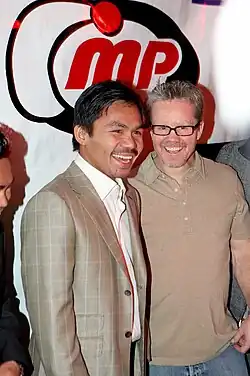He was named Fighter of the Decade for the 2000s by the Boxing Writers Association of America (BWAA), WBC, WBO, The Sporting News and HBO.[17][18] He is also a three-time Ring magazine, ESPN and BWAA Fighter of the Year, winning both awards in 2006, 2008 and 2009; and the Best Fighter ESPY Award in 2009 and 2011.[19] In 2016, Pacquiao was ranked second on ESPN's list of top boxers, pound-for-pound, of the past 25 years.[20] In 2024, they also ranked him second among the best boxers of the 21st century.[21]