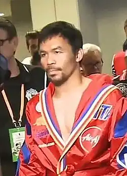 ![]() Pacquiao making his ring entrance for his fight against Keith Thurman, 2019 | |