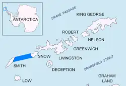 Boyd Strait is the 40-kilometre (25 mi) wide strait lying between Snow Island and Smith Island in the South Shetland Islands, Antarctica, and linking Drake Passage and the Bransfield Strait.