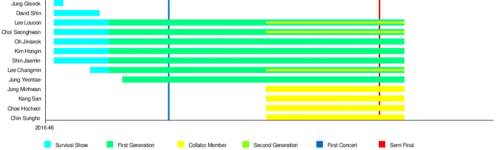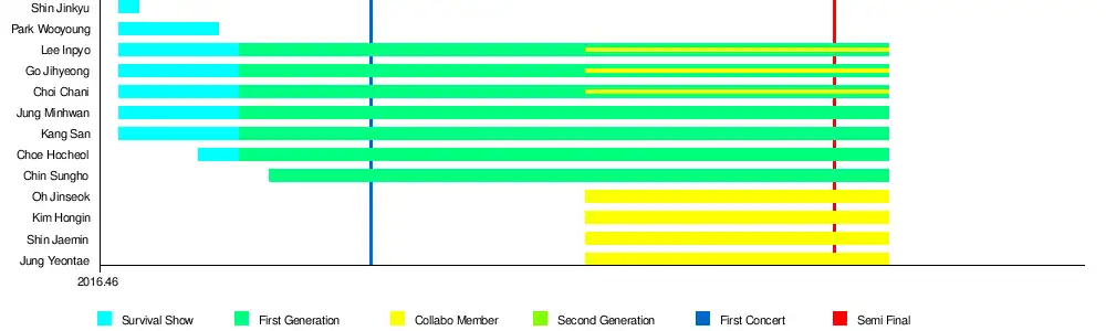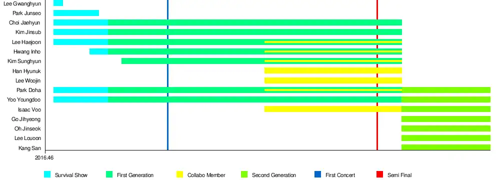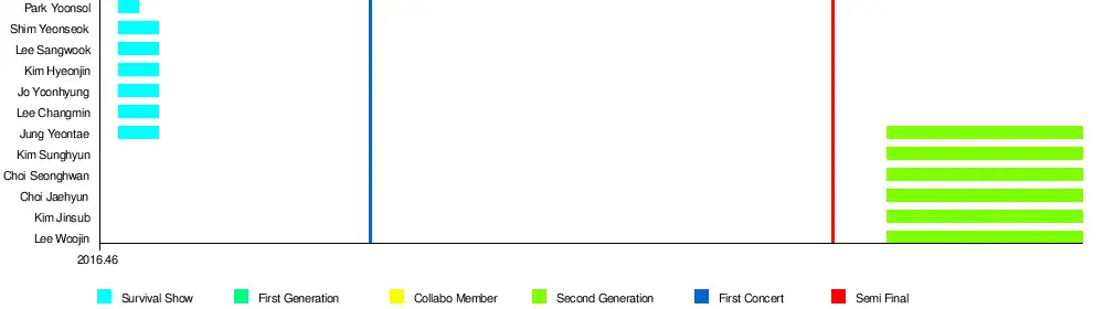 The survival show with the same name as the group was a 2016 reality boy group unit survival show that aired every Saturday 10pm on Mnet and tvN. It was a large-scale project in which the units of a selected number of members would be produced from a pool of 49 free-agents.[44]