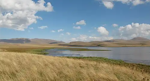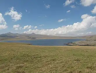 Boyuk Alagol (Azerbaijani: Böyük Alagöl) is a lake in the Kalbajar District of Azerbaijan. It is located on the Karabakh volcanic plateau. Its area is 5.1 square kilometres (2.0 sq mi) and the volume of water reaches 24,300,000 m3 (860,000,000 cu ft).[1][2] The Boyuk Alagol is located at an altitude of 2729 meters above sea level. The surface of the lake is covered with ice up to one meter thick from early November to late April. The water temperature is 14–15 degrees from June to August. [3]