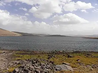 The lake was occupied by Armenian forces following the First Nagorno-Karabakh war and was administrated as part of the Shahumyan Province of the self-proclaimed Republic of Artsakh. The Kalbajar District, along with the lake, were returned to Azerbaijan on 25 November 2020 per the 2020 Nagorno-Karabakh ceasefire agreement.[4]