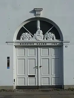 After the property was acquired by Ulf Brøste (1904–1970), a grocer, he brought his local historic collection of artifacts, images and archeological finds from Christianshavn, and displayed them in the building.[4] Most of the Brøste Collection was later transferred to Frieboeshvile while some artifacts were donated to Christianshavn Local Historic Society and Archives.[10] A statue of Christian IV by William Fredericia used to be seen in a niche in the building but was removed when the company P. Brøste closed in the 1990s and has now been installed in an auditorium at Christianshavn Gymnasium.[11]