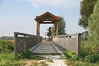 The Brücke von Andau (Hungarian: Mosontarcsai híd or Andaui híd) is a small bridge over the Einserkanal / Hanság-főcsatorna, a small artificial river which forms part of the border between Austria and Hungary. It is located near to the village of Andau (Burgenland, Austria).