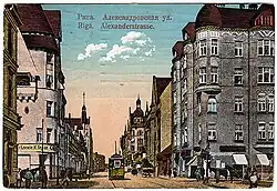 Throughout its history, the street and its three main parts were known as Große Sandstraße (before 1818), Aleksandrovskaya ulitsa (Александровская улица)/Alexanderstraße (1818–1923), Brīvības gatve (1923–1942, 1944–1950), Adolf-Hitler-Straße (1942–1944) and Ļeņina iela (1950–1991).[3]