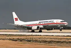The four remaining F-28s were also sold in 1986, giving Braathens SAFE a unified 737-200 fleet, reducing operating costs.[36] Six more 737-200 were delivered in 1986.[37] On 1 June 1989, Erik G. Braathen, son of Bjørn G., took over as CEO at the age of 34.[38] With the launch of the Boeing 737 Classic range, Braathens took delivery of the 156-seat 737-400 and the 124-seat 737-500, both featuring glass cockpits. The larger model was mostly used for charter services, while the smaller was mostly used in the domestic market.[39] The first -400 was delivered in 1989 and the first -500 the following year. By 1994 all -200 had been retired.[36]