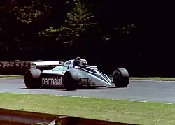 The first public appearance of the BT50 was at the 1981 British Grand Prix, where the team's lead driver, Nelson Piquet, used it in practice. He set a practice time 0.7 seconds slower than his qualifying effort in the Cosworth DFV-powered BT49. The BT50 handled poorly but still recorded 309 kilometres per hour (192 mph) through the speed trap, some 24 kilometres per hour (15 mph) faster than the BT49.[12] Piquet, a firm advocate for the BMW engine and believing, like Ecclestone, that the road to success in the near future was with a turbocharged engine, tested the BT50 throughout 1981.[9] Testing was plagued with unreliability; in one testing session at the Paul Ricard circuit in France, the team suffered nine engine blowups.[10]