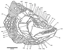 | Interpretive drawing of the skull of the holotype of Brachydegma caelatum[2] | |