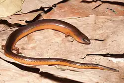 Brachymeles bicolor, common name two-colored short-legged skink,[2] is a species of skink endemic to Luzon, the Philippines. It is widely distributed through the island, at elevations of 250 to 850 m above sea level. However, its population is declining due to deforestation, and hence the species is classified as least concern by the IUCN.[1][3]