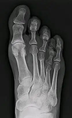 - ^ Zhu, David; Lefèvre, Maxime; Fernandez, Andréa; Galois, Laurent (2022-03-10). "Brachymetatarsia: Surgical Management, Case Report, and Literature Review". Case Reports in Orthopedics. 2022. Hindawi Limited: 1–6. doi:10.1155/2022/8253096. ISSN 2090-6757. PMC 8930250. PMID 35310144.