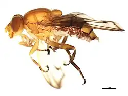 Brachyopa caesariata (Moran & Skevington, 2019), the Plain-winged Sapeater, is an uncommon species of syrphid fly.[1] It has been observed in Canada, Alaska and northern United States. Hoverflies get their names from the ability to remain nearly motionless while in flight. The adults are also known as flower flies for they are commonly found around and on flowers, from which they get both energy-giving nectar and protein-rich pollen. Larvae for this genus are of the rat-tailed type. B.caesariata larvae have not been described.[2] (as species 78-2)
