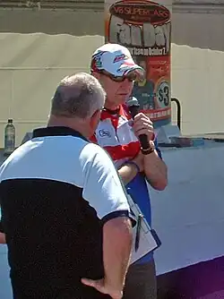 Jones announced his retirement from full-time racing after the 2007 New Zealand round.[2] His car was driven for the rest of the season by Simon Wills. Jones continues to appear in media roles regularly having taken on guest commentator roles with TV broadcasts over ten years ago, and co-hosted with Neil Crompton, which was hosted by internet provider Telstra Bigpond as part of their V8 Supercar package until it was axed at the end of 2008. Jones continued to drive for his team in an endurance co-driver role, finishing fifth in the 2008 Bathurst 1000.[1] After running as high a third in the 2009 Bathurst 1000 and a career spanning 109 ATCC/V8s races spanning 24 seasons, Jones retired from competitive racing.
