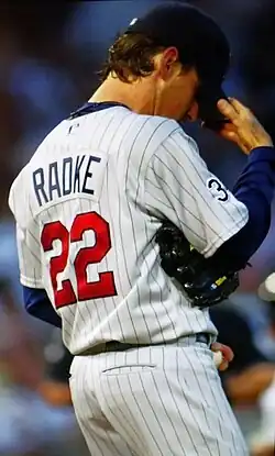 Brad William Radke (born October 27, 1972) is an American former professional baseball pitcher who played his entire 12-season career with the Minnesota Twins of Major League Baseball (MLB). Radke won 148 career games and was one of the most consistent pitchers in the Twins organization during the late 1990s.