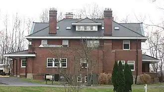 Bradford Estate, also known as Bradford Woods, is a historic estate and national historic district located in Clay Township, Morgan County, Indiana. The original house was built about 1850, and is a one-story, double pen vernacular frame dwelling. It features a full-width shed porch. The Campbell House is a 1+1⁄2-story frame dwelling sheathed in red brick in 1920. It was moved to its present site in 1912 with the building of the manor house. The manor house was built in 1912, and is a 2+1⁄2-story, Prairie School style brick dwelling. It features a hip roofed porch supported by two piers. Also on the property are the contributing spring house (c. 1900) and carriage house (1909).[2]