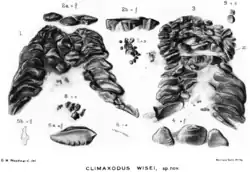 | Articulated tooth-plates of the petalodont Tanaodus (formerly Climaxodus), a member of the Bradyodonti | |