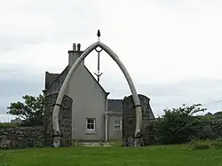The remains of a chapel, Teampall Eòin (the Temple of John the Baptist), built in the 15th century or earlier,[4] lie inside a walled compound. This also contains a cemetery, now known as Cill Sgàire (Zechariah's cemetery) after Zechariah MacAulay who fell in a skirmish between the MacAulays of Uig and the Morrisons of Ness.