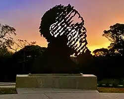 Bama-ngay Ancestral Elder, 2021 - Reconciliation Rocks Cape York.EMBRACE & REFLECTION - In 2016 Stevens was commissioned by the City of Cairns to create a 9m and 5m high linking public art installation that celebrated the ongoing interrelationship between James Cook University and the City[8]