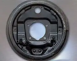 The backing plate provides a base for the other components. The back plate also increases the rigidity of whole set-up, supports the housing, and protects it from foreign materials like dust and other road debris. It absorbs the torque from the braking action, and that is why back plate is also called the "Torque Plate". Since all braking operations exert pressure on the backing plate, it must be strong and wear-resistant. Levers for emergency or parking brakes, and automatic brake-shoe adjuster were also added in recent years.