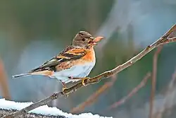 - ^ a b c BirdLife International (2016). "Fringilla montifringilla". IUCN Red List of Threatened Species. 2016: e.T22720041A88203665. doi:10.2305/IUCN.UK.2016-3.RLTS.T22720041A88203665.en. Retrieved 12 November 2021.
