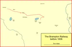 Brampton was an important township, with a population of about 3,500 at this time[15] and as a market town it received a considerable volume of goods and visitors. The horse-drawn dandy coach connection from Milton station on the main line[note 3] was increasingly criticised and goods had to be carted from Milton station, renamed Brampton in 1870.[16]